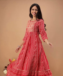This flared kurti is a fusion of traditional grace and modern design. Made from soft rayon fabric, it flows beautifully and flatters all body types.